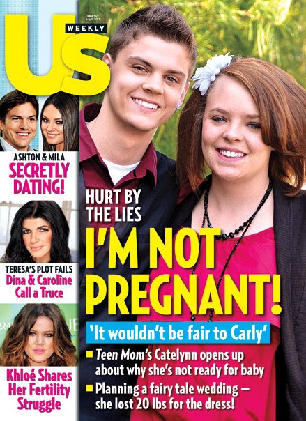 A teen mom is NOT PREGNANT and is hurt by the lies. Said lies were printed in In Touch, with the headline “I’m Pregnant!” This is what I learned before I even opened this week’s issue of Us Weekly.